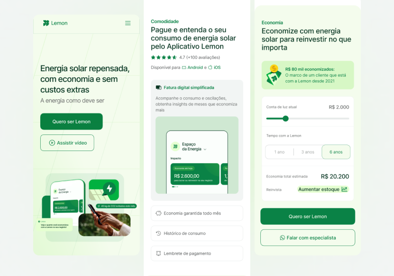 Projetos desenvolvidos para diferentes públicos e contextos, de produtos voltados ao consumidor final a soluções para organizações em setores como energia e serviços financeiros.
