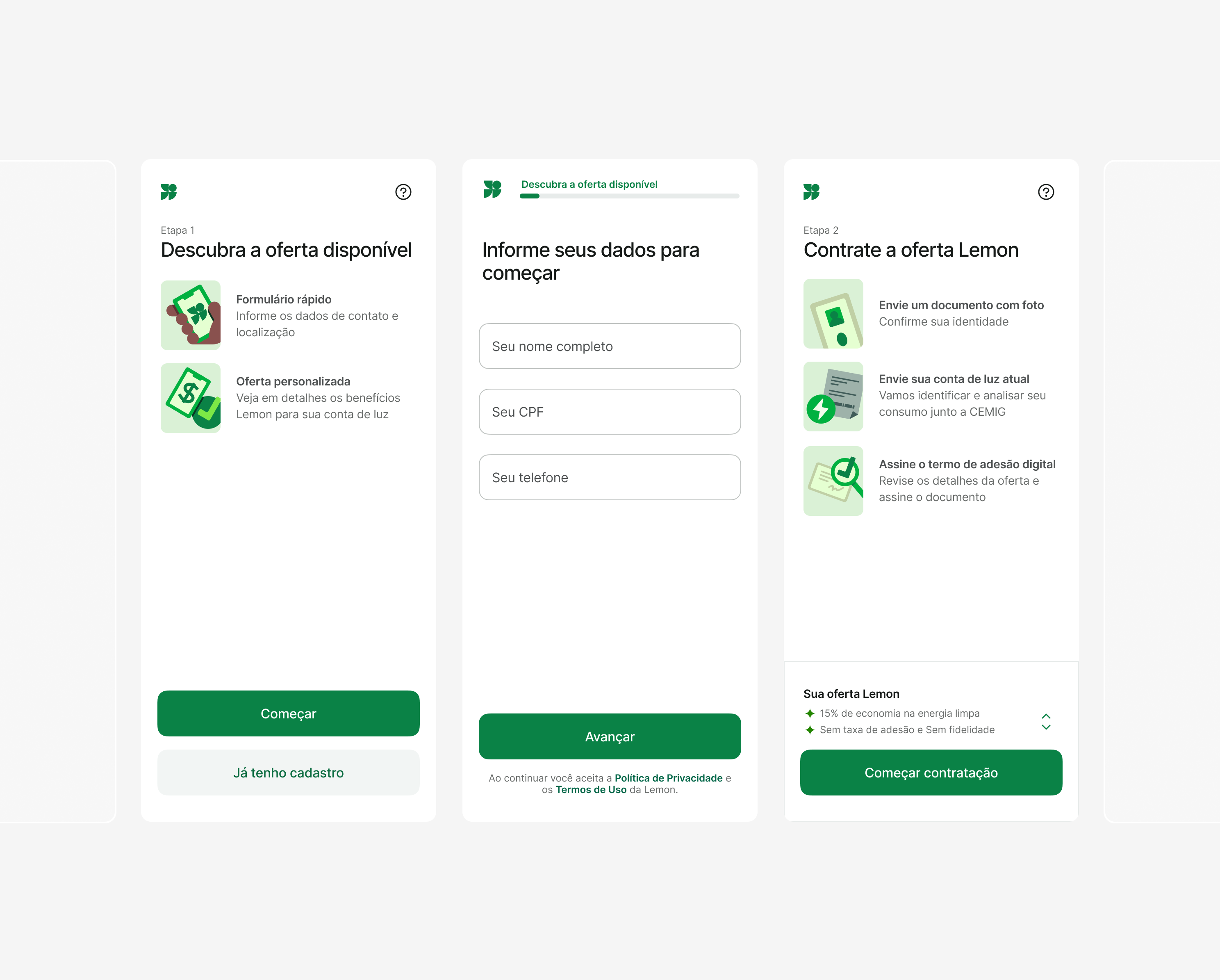 Ao longo de 4 anos, liderei a evolução da frente de aquisição da Lemon, atuando na interseção entre estratégia de produto, pesquisa e experiência digital. Meu papel envolveu diagnosticar problemas estruturais do funil, definir hipóteses de melhoria e conduzir experimentações contínuas para transformar a aquisição em um processo mais simples, escalável e orientado por dados.